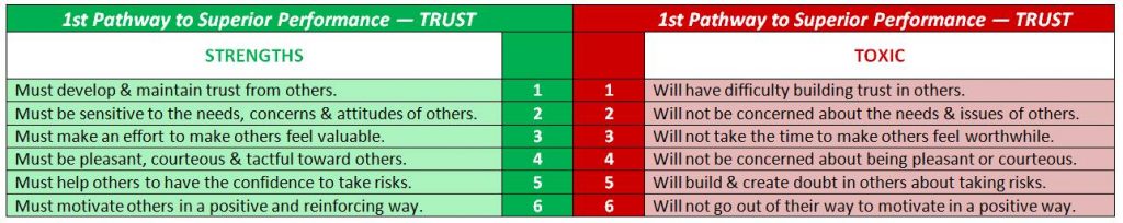 What behaviours would define ‘Trust’ in your organisation; what behaviours would be ‘toxic’?